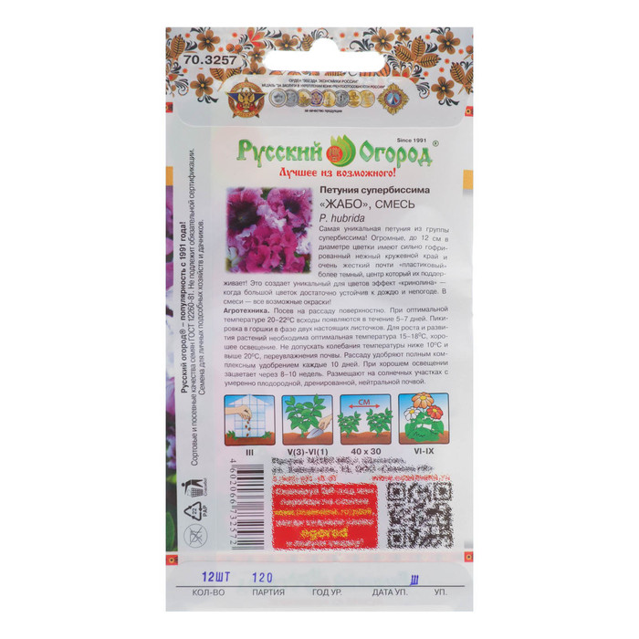 Уникальная петуния, которую невозможно отнести ни к одной из известных групп этого растения. Огромные, до 12 см в диаметре цветки имеют сильно гофрированный нежный кружевной край и очень жесткий, почти "пластиковый" более темный центр, который их поддерживает! Это создает уникальный для цветов эффект "кринолина" - когда большой цветок достаточно устойчив к дождю и непогоде. В отличие от ранее встречаемых похожих петуний, имеет компактные растения, что делает ее декоративность непревзойденной.