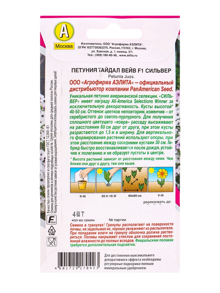 Семена цветов Петуния Тайдал Вейв F1 сильвер (драже) PanAmerican Wave, Ц/П,4 шт.