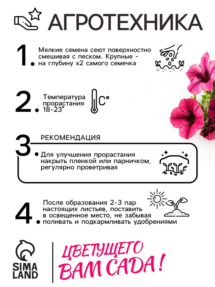Посев: Рекомендуется сеять семена в феврале-марте. Для лучшего результата используйте легкий грунт и обеспечьте достаточное освещение.