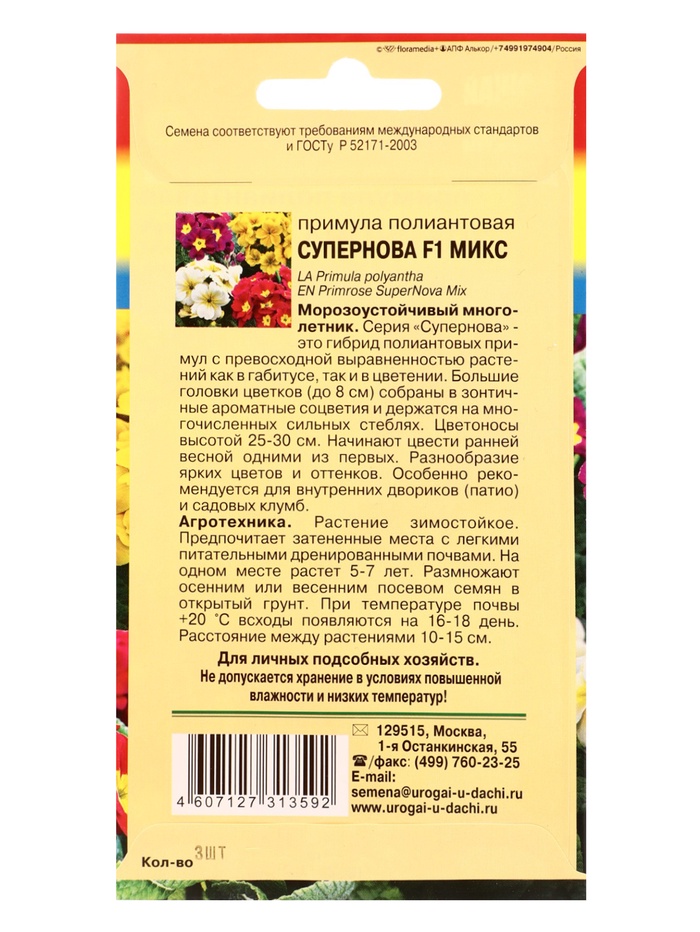 Семена цветов Примула Полиантовая Супернова F1 Микс 3 шт.