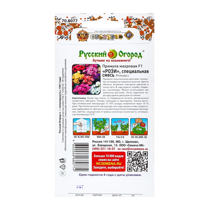 Условия выращивания. Посев под стекло, по поверхности легкого, увлажненного почвенного субстрата. Посевы помещают в прохладное, темное место. При оптимальной температуре 15-18°С всходы появляются через 10-14 дней. При более высокой температуре или подсыхании почвы прорастание задерживается. Для роста и развития растений необходимо прохладное, светлое, защищенное от прямых солнечных лучей место, оптимальная температура 15°С.