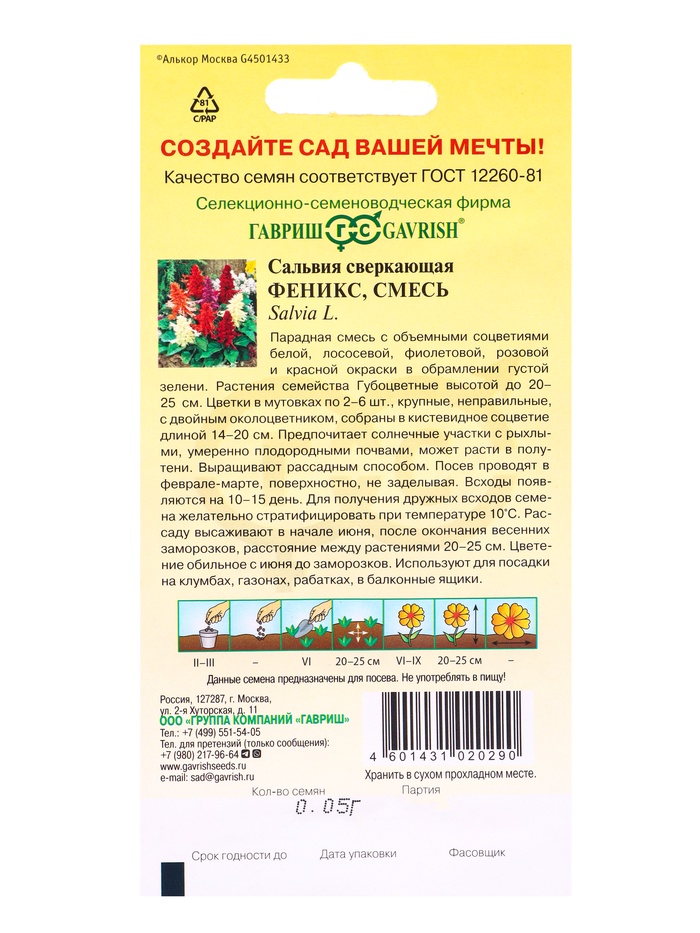 Семена цветов Сальвия Феникс, смесь* 0,05 г
