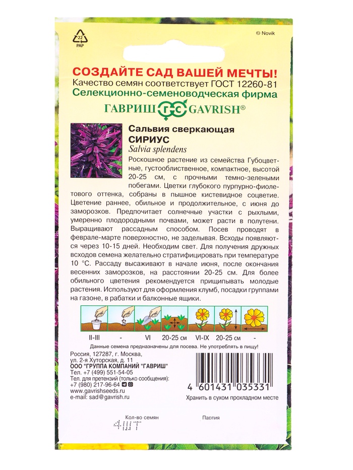 Семена цветов Сальвия Сириус,* карликовая 4 шт.