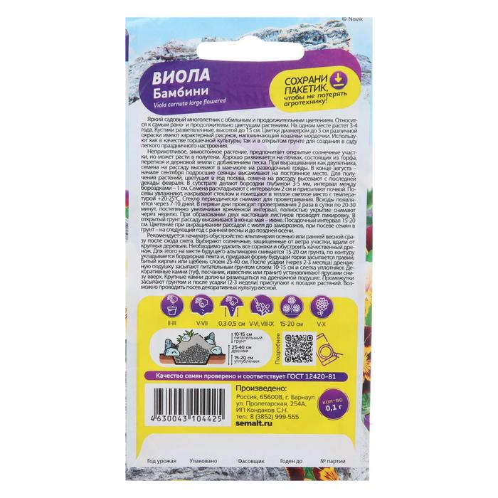 Яркий садовый многолетник с обильным и продолжительным цветением. Относится к самым рано- и продолжительно цветущим растениям. На одном месте растет 3-4 года. Кустики разветвленные, высотой до 15 см. Цветки диаметром до 5 см различной окраски имеют характерный рисунок, напоминающий кошачьи мордочки. Используют как в качестве горшечной культуры, так и в открытом грунте для создания в саду легкого праздничного настроения.Неприхотливое, зимостойкое растение, предпочитает открытые солнечные участки, но может расти в полутени. Хорошо развивается на почвах, состоящих из торфа, перегноя и дерновой земли с добавлением песка. При выращивании как двулетника, семена на рассаду высевают в мае-июле на разводочные гряды. В конце августа - начале сентября подросшие сеянцы высаживают на постоянное место.