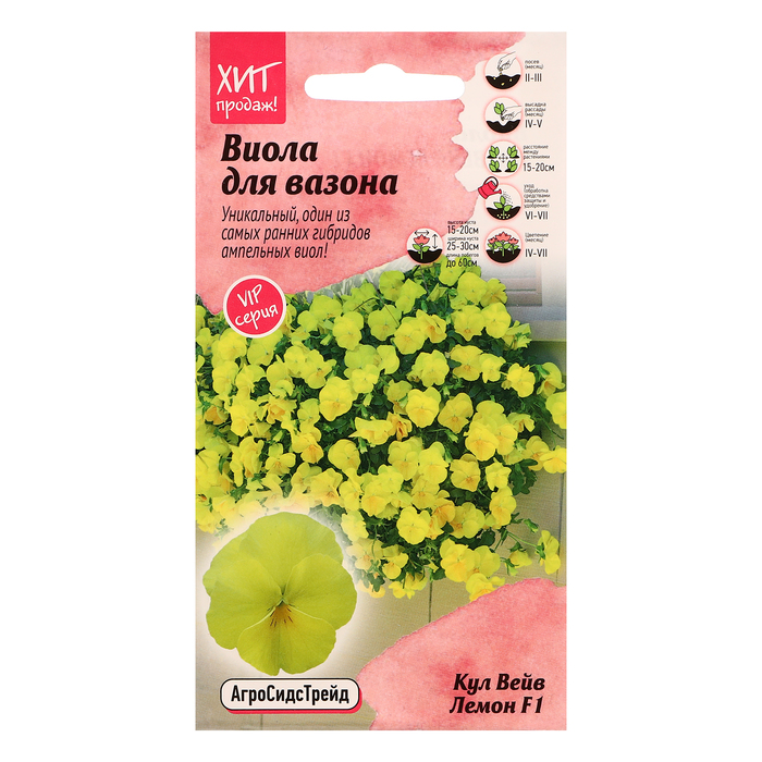 Одна из самых ранних серий ампельных виол. Уникальный гибрид между фиалками виттрока и рогатой селекции PanAmerican Seed. Это настоящие ампельныевиолы, которые имеют габитус, идеальный подходящий как для клумб, так и для подвесных корзин. Образует кустик шириной 25-30 см и высотой 15-20 см. При правильной агротехнике образует побеги до 60 сантиметров в длину. Образует настоящее облако из цветов, размер 5-6 см каждый. На гибких свисающих побегах образуется масса ярких цветов, устойчивых к низким температурам и неблагоприятным погодным условиям. Цветение обильное и продолжительное, с начала весны и на протяжении всего лета. Агротехника: Виолу можно выращивать в одно- и двухлетней культуре. 1 способ: на рассаду семена высевают в конце февраля – начале марта, слегка присыпая легким субстратом или песком. Посевы увлажняют из опрыскивателя и накрывают пленкой или стеклом. Всходы появляются на 14-20 день. Сеянцы необходимо притенять. В грунт рассаду высаживают в конце апреля – начале мая по схеме 20х20 см. 2 способ: семена высевают в июне-июле в открытый грунт, сильно не заглубляя. Осенью рассаду высаживают на постоянное место по схеме 20х20 см. Цветение начинается на следующий год в мае и продолжается несколько месяцев.