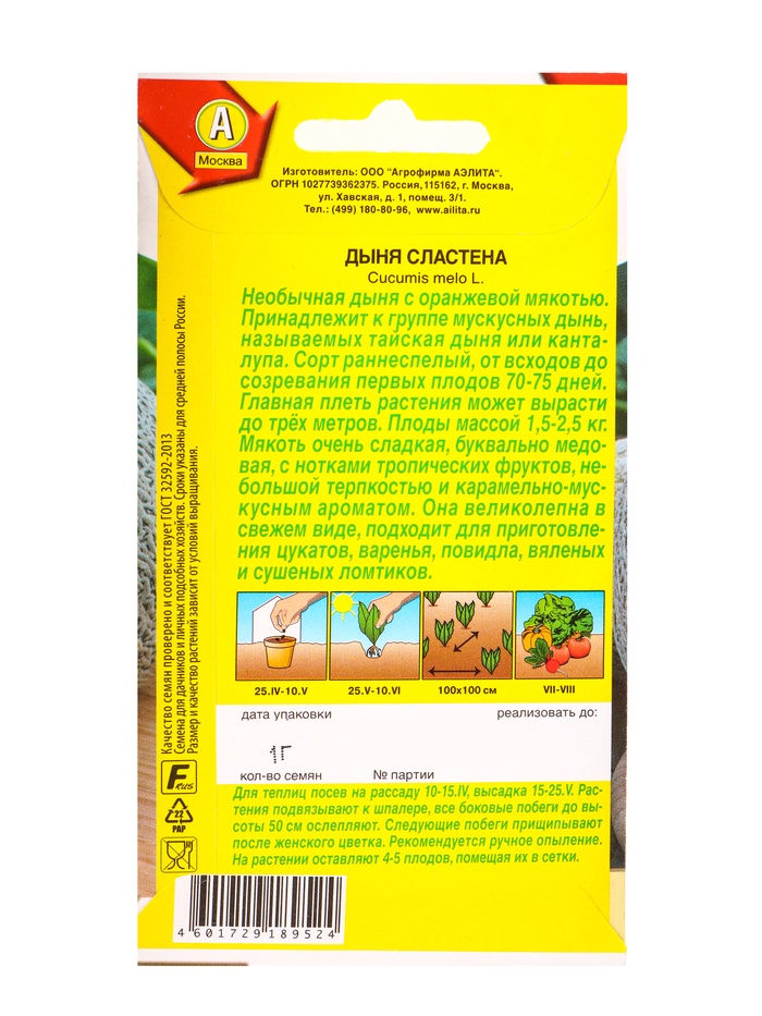 Семена Дыня Сластена Сладкоежка, Ц/П,1 г