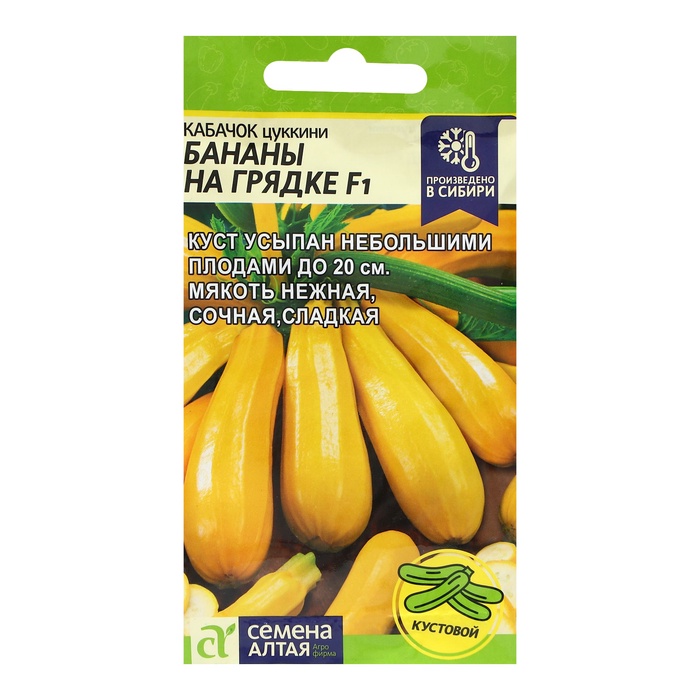 Раннеспелый (38-45 дней) гибрид с высокой завязываемостью плодов. Растение мощное, кустовое, компактное. Плоды цилиндрические, гладкие, выравненные, золотисто-желтые, длиной 18-20 см, массой 0,6-0,8 кг. Мякоть кремово-желтая, нежная, сладковатая, сочная. Подходит для домашней кулинарии и консервирования. Показывает отличные результаты во всех климатических зонах нашей страны. Урожайность высокая 7,5-9,2 кг/м². Семена сеют непосредственно в грунт, когда минует угроза возвратных заморозков. Для получения ранней продукции кабачки сеют на рассаду поздней весной, за две-три недели до высадки. Схема посадки 100х100 см, глубина заделки семян 3-5 см. При раннем посеве или посадке рассады в открытый грунт необходимо временное укрытие пленкой. Для получения наиболее высокого урожая рекомендуется регулярно проводить рыхление почвы и умеренные поливы. В период цветения-налива плодов рекомендуется провести подкормку комплексными минеральными удобрениями. Сбор урожая по мере созревания плодов. Не требует формировки.