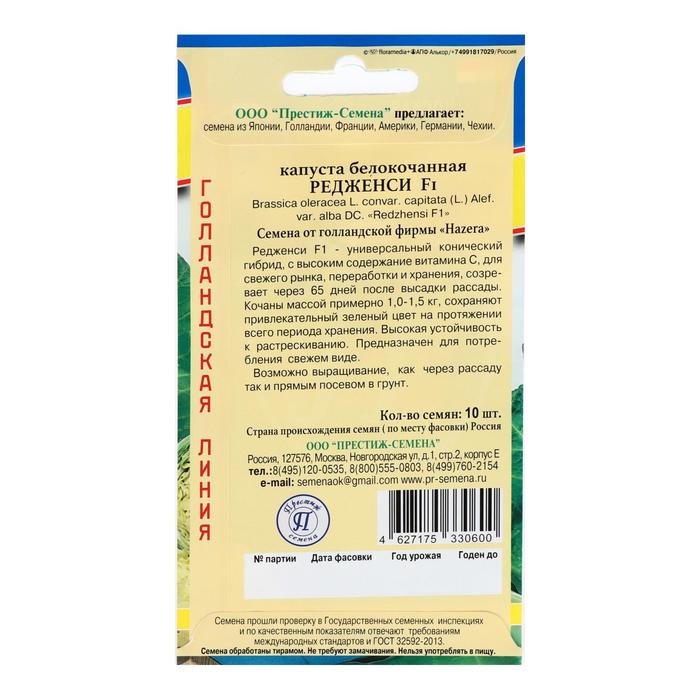 Семена Капусты белокочанной "Редженси", F1, 7 шт.