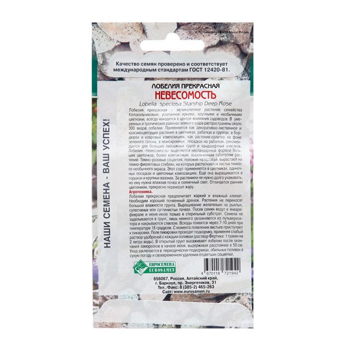 Габариты: 15 x 8 x 0,5 Страна: Россия В боксе: 150 шт Состав: См. на упаковке Материалы: см. на упаковке Фасовка: по 10 шт Индивидуальная упаковка: Без упаковки Сертификат: Не подлежит сертификации Цвет: Розовый Вегетация: Однолетники Вид: Лобелия Посев на рассаду: Апрель, Март Посев (посадка) в грунт: Июнь, Май Цветение период: Сентябрь, Август, Июль, Июнь Место выращивания: Открытый грунт Сухоцвет: Нет Махровые: Нет Высота растений: До 30 см По форме куста: Кустовая Назначение: Для создания цветников, клумбы Отношение к свету: Светолюбивые Нуждаются ли в стратификации: Нет Наша коллекция семян включает как популярные овощи, так и яркие цветы, идеально подходящие для вашего сада. С нами вы сможете наслаждаться богатым урожаем и великолепием цветения в любое время года. Данные семена идеально подойдут для выращивания в вашем саду. Комментарии к товару