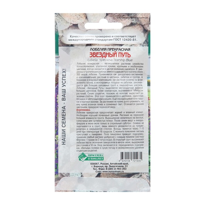 Габариты: 15 x 8 x 0,5 Страна: Россия В боксе: 200 шт Состав: См. на упаковке Материалы: см. на упаковке Фасовка: по 6 шт Индивидуальная упаковка: Без упаковки Сертификат: Не подлежит сертификации Цвет: Фиолетовый Вегетация: Однолетники Вид: Лобелия Место выращивания: Открытый грунт Сухоцвет: Нет Махровые: Нет По форме куста: Кустовая Назначение: Для создания цветников, клумбы Отношение к свету: Светолюбивые Разновидность: Цветущее Нуждаются ли в стратификации: Нет Наша коллекция семян включает как популярные овощи, так и яркие цветы, идеально подходящие для вашего сада. С нами вы сможете наслаждаться богатым урожаем и великолепием цветения в любое время года. Данные семена идеально подойдут для выращивания в вашем саду. Комментарии к товару