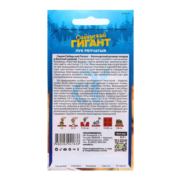 Серия Сибирский Гигант – богатырский размер плодов и богатый урожай. Раннеспелый сорт салатного назначения. Луковицы округлой формы, слегка вытянутые, золотисто-желтого цвета, массой до 1,5-2 кг. Максимальная масса достигается при выращивании рассадным способом в однолетней культуре, при посеве семенами в грунт формируется стандартная луковица. Благодаря нежному сладко-острому вкусу и отсутствию резкого лукового запаха – это великолепный сорт для употребления в свежем виде.