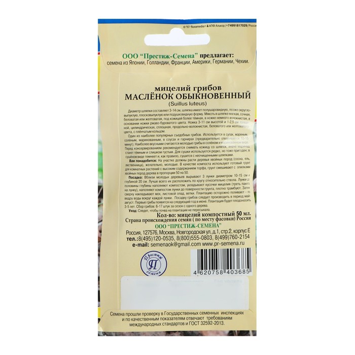 Габариты: 15 x 8 x 0,5 Страна: Россия В боксе: 200 шт Состав: Семена Материалы: семена Фасовка: по 5 шт Индивидуальная упаковка: Без упаковки Сертификат: Не подлежит сертификации Место выращивания: Универсальный, Открытый грунт Вид: Маслята Маслёнок обыкновенный представляет собой один из наиболее популярных сортов грибов. Широко используется в кулинарии. Подходит для варки, жарки, засолки, маринования, приготовления соусов и гарниров. Наиболее вкусными считаются молодые грибы. Для высадки вам понадобится: Молодые деревья хвойных пород (сосна, ель, лиственница) на участке. Готовый грунт для комнатных растений с высоким содержанием торфа. Грунт смешивают с опилками хвойных пород дерева в пропорции 50 на 50. Посадка: Вблизи молодых деревьев вокруг ствола выкопайте 3 лунки диаметром 10-15 см и глубиной 20 см. Наполните лунки компостом до половины. Уложите кусочки мицелия. Наполните лунки компостом, плотно утрамбуйте. Сверху накройте мхом и листьями. Полейте плантацию. Период высадки — май-август. Первый урожай — через год. Период плодоношения — 3-5 лет. Урожайность — 6-17 штук за сезон с одного дерева. Комментарии к товару