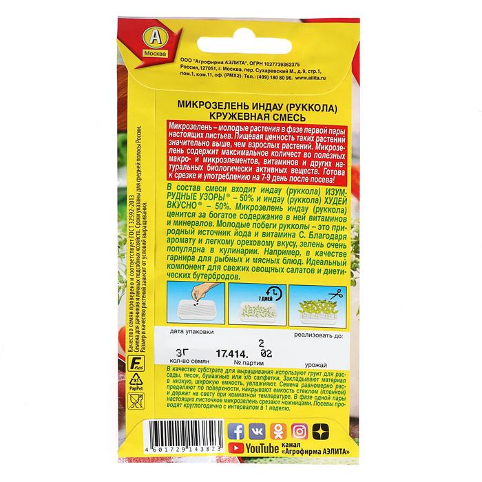 Габариты: 15 x 8 x 0,3 Страна: Италия В боксе: 600 шт Состав: См. на упаковке Материалы: см. на упаковке Фасовка: по 10 шт Индивидуальная упаковка: Без упаковки Сертификат: Не подлежит сертификации Сроки созревания: Средний Место выращивания: Универсальный Микрозелень – молодые растения в фазе первой пары настоящих листьев. Пищевая ценность таких растений значительно выше, чем взрослых растений. Микрозелень содержит максимальное количест во полезных макро- и микроэлементов, витаминов и других натуральных биологически активных веществ. Готова к срезке и употреблению на 7-9 день после посева! Микрозелень руккола ценится за богатое содержание в ней витаминов и минералов. Молодые побеги рукколы – это природный источник йода и витамина С. Благодаря аромату и легкому ореховому вкусу, зелень очень популярна в кулинарии. Например, в качестве гарнира для рыбных и мясных блюд. Идеальный компонент для свежих овощных салатов и диетических бутербродов. Комментарии к товару