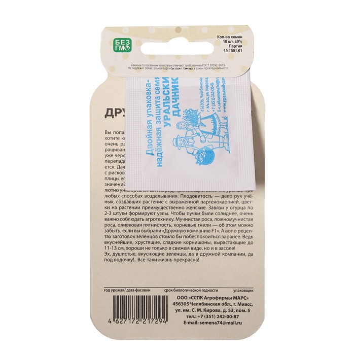 Габариты: 15 x 8 x 0,2 Страна: Россия В боксе: 200 шт Состав: Семена Материалы: семена Фасовка: по 10 шт Индивидуальная упаковка: Без упаковки Сертификат: Не подлежит сертификации Тип: Партенокарпические Сроки созревания: Ранний Место выращивания: Универсальный Сорт или гибрид: Гибрид F1 Сорт: F1 Ампельные: Да Вьющиеся (лианы): Да Сроки созревания: Ранний ( до 48 дней) Размер: Корнишоны (до 12 см) Гибрид – находка для тех, кто хочет очень ранний урожай огурцов, но особых условий для их выращивания нет. После всходов корнишоны могут появиться уже через 33–35 дней (!), несмотря на неблагоприятную погоду и перепады температур, к чему растение успешно приспосабливается. Даже на Севере этот огурец удается на славу. А в регионах с рискованным земледелием высаживать в неотапливаемые теплицы его можно после установления плюсовых температурных значений на улице. Выращивать огурец можно и на улице. Абсолютно универсальный гибрид, приносящий высокие урожаи при любых способах возделывания. Растение с выраженной партенокарпией (цветы на растении преимущественно женские). Завязи у огурца по 2–3 штуки формируют узлы. Мучнистая роса, ложномучнистая роса, оливковая пятнистость, корневые гнили – об этом можно забыть, если вы выбрали ДРУЖНУЮ КОМПАНИЮ F1. А вот о рецептах заготовок зеленцов стоило бы побеспокоиться заранее. Ведь вкуснейшие, хрустящие, сладкие корнишоны, вырастающие до 11–13 см, хороши не только в свежем виде, но и в засоле! Эх, душистые, вкуснющие зеленцы, да в дружной компании, да с румяной жареной картошечкой!.. Все-таки жизнь прекрасна! Комментарии к товару