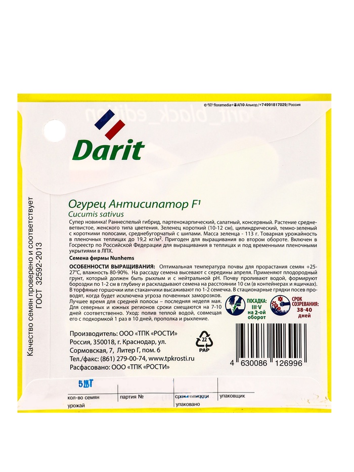 Семена Огурец Антисипатор F1 Дарит Black Edition 5шт (400)