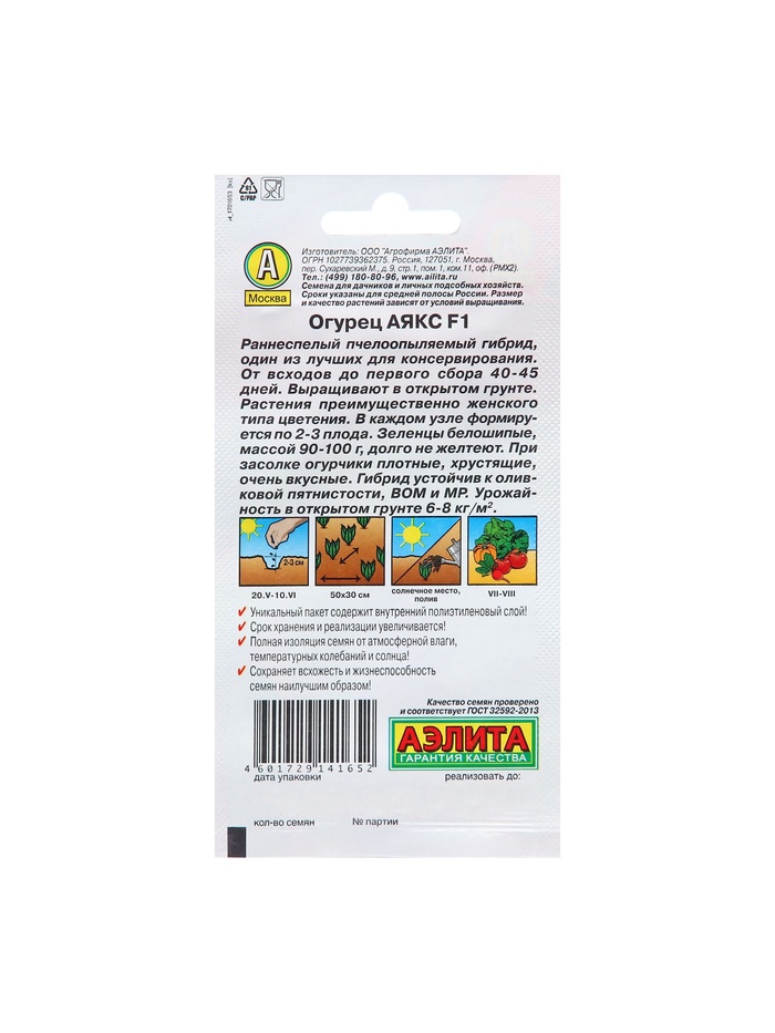 Габариты: 15 x 8 x 0,1 Страна: Италия В боксе: 400 шт Состав: См. на упаковке Материалы: см. на упаковке Фасовка: по 10 шт Индивидуальная упаковка: Без упаковки Сертификат: Не подлежит сертификации Тип: Пчёлоопыляемый Сроки созревания: Ранний Место выращивания: Открытый грунт Сорт или гибрид: Гибрид F1 Сорт: F1 Ампельные: Да Вьющиеся (лианы): Да Сроки созревания: Ранний ( до 48 дней) Размер: Корнишоны (до 12 см) Раннеспелый пчелоопыляемый гибрид, один из лучших для консервирования. От всходов до первого сбора 40-45 дней. Выращивают в открытом грунте. Растения преимущественно женского типа цветения. В каждом узле формируется по 2-3 плода. Зеленцы белошипые, массой 90-100г, долго не желтеют. При засолке огурчики плотные, хрустящие, очень вкусные. Гибрид устойчив к оливковой пятнистости, ВОМ и МР. Урожайность в открытом грунте 6-8 кг/м2. Комментарии к товару