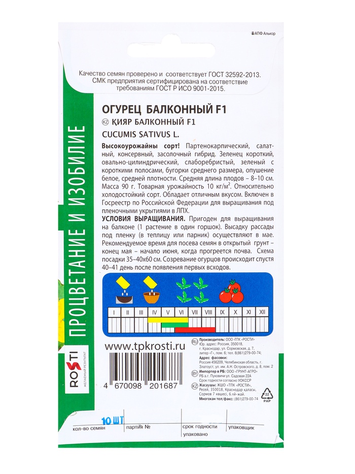 Семена Огурец Балконный F1 Агроуспех 10шт (400)