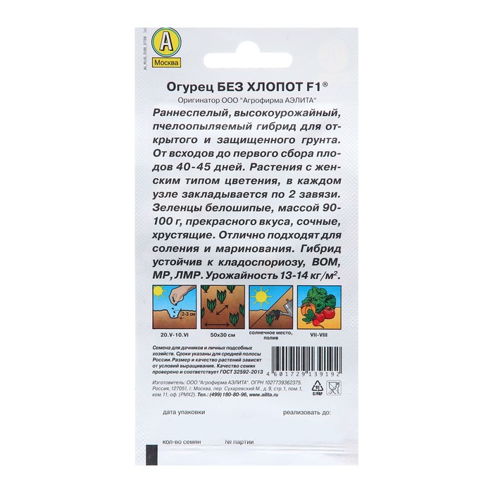 «Без хлопот» — это раннеспелый и высокоурожайный партенокарпический сорт для открытого грунта и плёночных укрытий. Плодоношение начинается на 40–44 день от всходов.