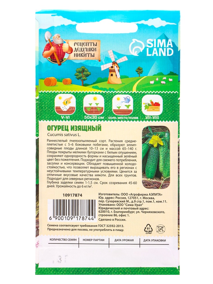 Габариты: 15 x 8 x 0,1 Страна: Россия В боксе: 480 шт Состав: Семена Материалы: семена Фасовка: по 10 шт Индивидуальная упаковка: Без упаковки Габариты товара: 15 см × 7 см × 1 см Сертификат: Не подлежит сертификации Тип: Пчёлоопыляемый Посев (посадка) в грунт: Июнь, Май Место выращивания: Закрытый грунт (теплицы, укрытия), Открытый грунт Сорт или гибрид: Сорт Сроки созревания: Ранний ( до 48 дней) Размер: Корнишоны (до 12 см) Форма: Цилиндрическая Применение: Для засолки и маринования Урожайность, м²: 6 Тип поверхности: Мелкобугорчатый Огурец «Изящный» – это старый, заслуженный пчелоопыляемый сорт, который десятилетиями радует огородников стабильным урожаем. Его ценят за ранний срок созревания, отличный вкус свежих плодов и идеальную пригодность для засолки и маринования.