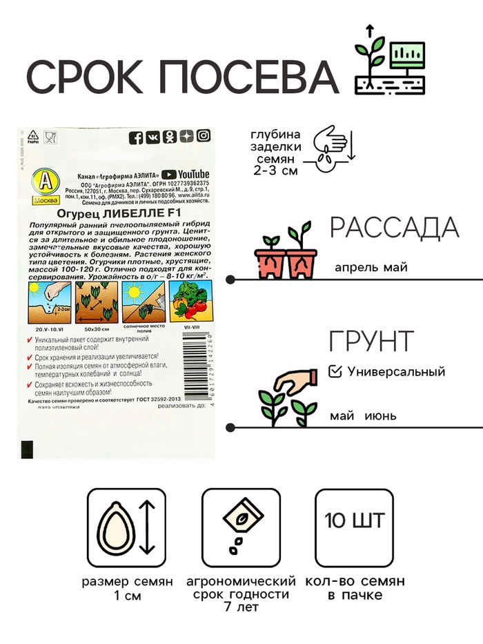 Габариты: 12 x 8 x 0,1 Страна: Италия В боксе: 500 шт Состав: См. на упаковке Материалы: см. на упаковке Фасовка: по 10 шт Индивидуальная упаковка: Без упаковки Сертификат: Не подлежит сертификации Тип: Пчёлоопыляемый Сроки созревания: Ранний Место выращивания: Универсальный Сорт или гибрид: Гибрид F1 Сорт: F1 Ампельные: Да Вьющиеся (лианы): Да Сроки созревания: Средний (от 48 до 60 дней) Размер: Корнишоны (до 12 см) Популярный ранний пчелоопыляемый гибрид для открытого и защищенного грунта. Ценится за длительное и обильное плодоношение, замечательные вкусовые качества, хорошую устойчивость к болезням. Растения женского типа цветения. Огурчики плотные, хрустящие, массой 100-120 г. Отлично подходят для консервирования. Урожайность в о/г – 8-10 кг/м2. Комментарии к товару