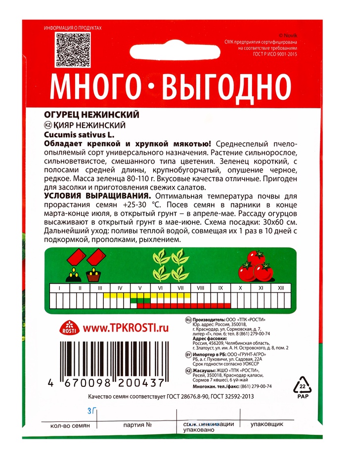 Семена Огурец Нежинский Агроуспех Много-Выгодно 3г (150)