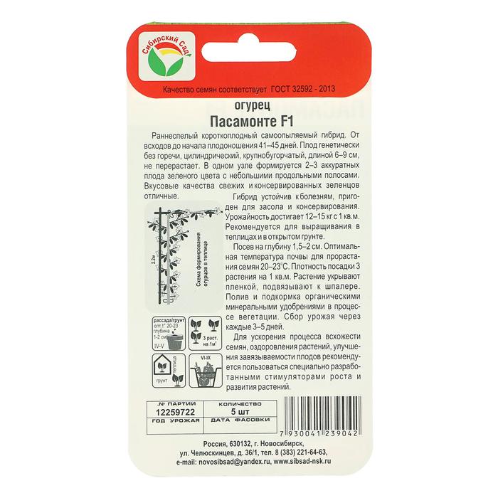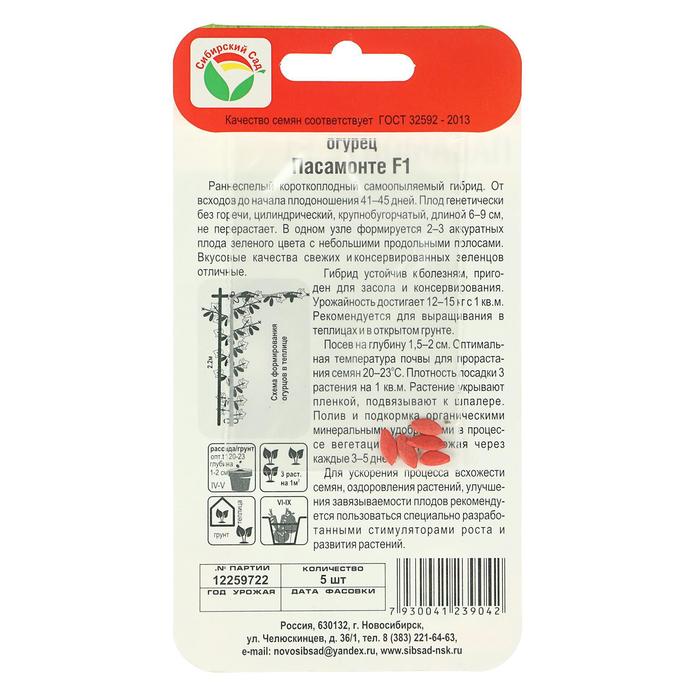 Семена Огурец Пасамонте F1, самоопыляемый, 5шт