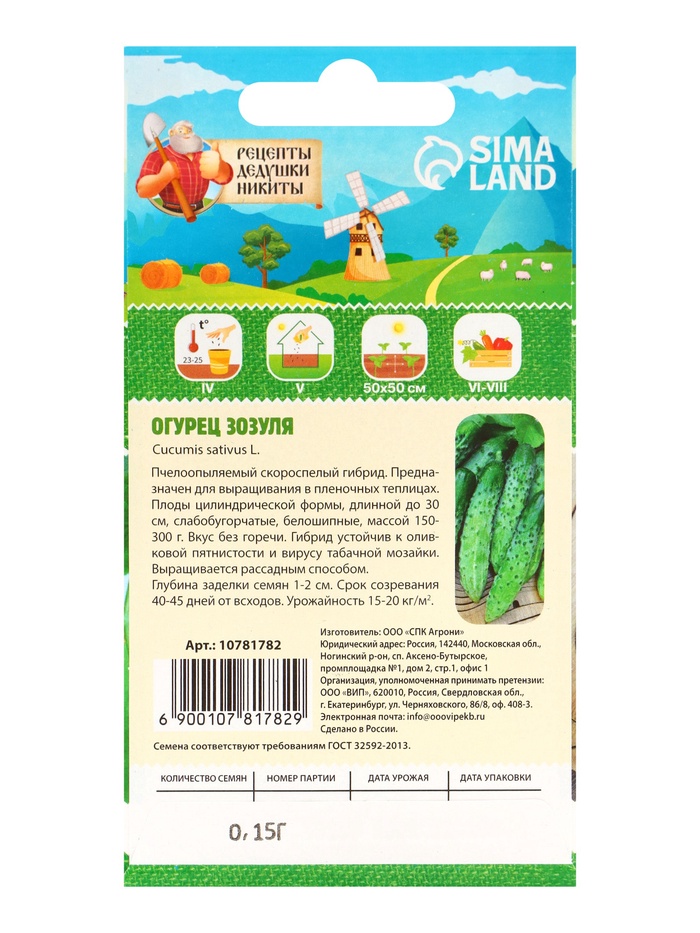 Габариты: 15 x 8 x 0,2 Страна: Россия В боксе: 3100 шт Состав: Семена Материалы: семена Фасовка: по 10 шт Индивидуальная упаковка: Без упаковки Габариты товара: 15 см × 7 см × 1 см Сертификат: Не подлежит сертификации Тип: Пчёлоопыляемый Посев на рассаду: Апрель Посев (посадка) в грунт: Май Место выращивания: Закрытый грунт (теплицы, укрытия) Сорт или гибрид: Сорт Размер: Корнишоны (до 12 см) Вид: Семечки Форма: Цилиндрическая Применение: Универсальное Урожайность, м²: 15 - 20 Тип поверхности: Мелкобугорчатый Описание семян огурца "Зозуля" -Сорт: Зозуля -Вес: 0,15 г Характеристика: -Тип: Огурец -Форма плодов: Цилиндрическая, гладкая -Длина плодов: 12-15 см Особенности: Среднеспелый сорт, время от всходов до уборки составляет 50-60 дней. Плоды имеют ярко-зеленый цвет и сладкий вкус. Устойчив к основным заболеваниям, таким как мучнистая роса и пероноспороз. Рекомендации по выращиванию: Посев семян рекомендуется проводить в теплицу или на открытый грунт после окончания заморозков. Растения предпочитают солнечные участки и плодородные, хорошо дренированные почвы. Регулярный полив и удобрение способствуют обильному плодоношению. Применение: Идеально подходит для свежих салатов и консервирования. Плоды можно использовать в кулинарии для приготовления различных блюд. Огурец "Зозуля" станет отличным выбором для вашего огорода, обеспечивая вкусный и обильный урожай! Советы при посеве Комментарии к товару
