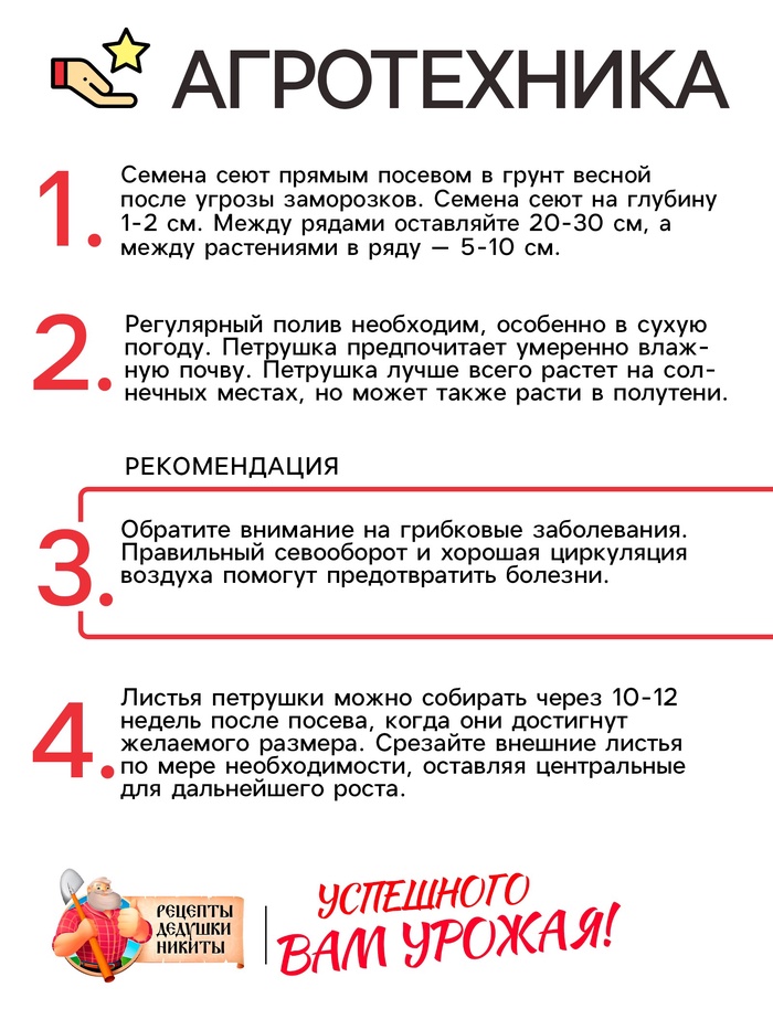 Семена петрушки листовой "Богатырь" – отличный выбор для огородников, желающих вырастить ароматную зелень, которая станет неотъемлемой частью многих блюд.