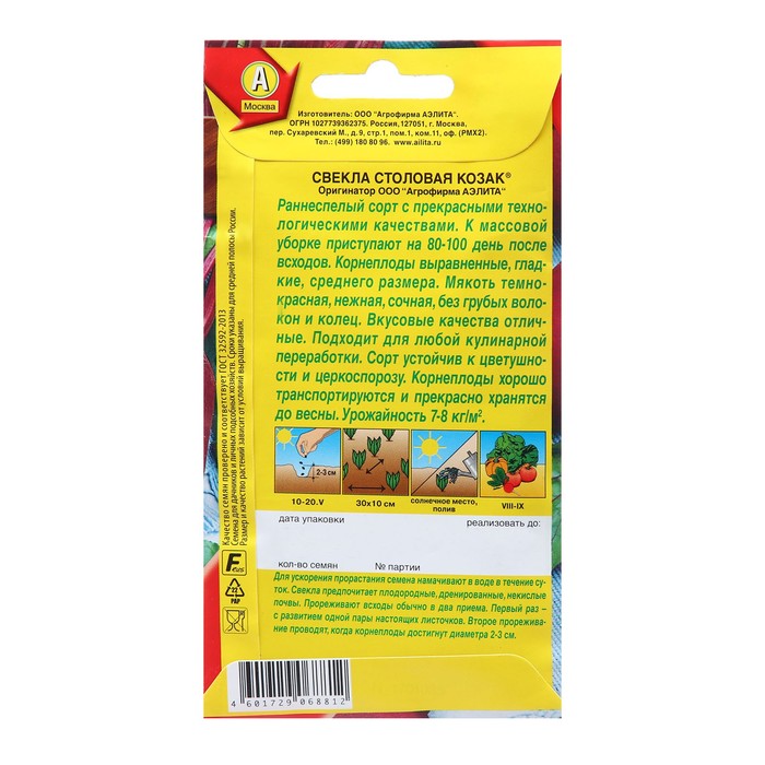 Производитель: Агрофирма АЭЛИТА Габариты: 15 x 8 x 0,2 Страна: Польша В боксе: 400 шт Состав: См. на упаковке Материалы: см. на упаковке Фасовка: по 10 шт Сертификат: Не подлежит сертификации Сроки созревания: Ранний Посев на рассаду: Апрель, Февраль Посев (посадка) в грунт: Апрель, Май Место выращивания: Открытый грунт Сорт или гибрид: Сорт Вид: Семечки Форма: Круглая