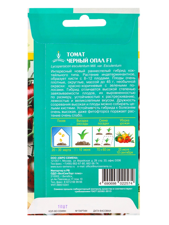 Интересный новый раннеспелый гибрид коктейльного типа. Растение индетерминантное, образует кисти с 8-12 плодами. Плоды очень плотные, округлые, массой до 45 г, необычной окраски: красно-коричневые с зелеными полосами. Гибрид отличается высокой степенью завязываемости плодов, их выровненностью по размеру, устойчивостью к растрескиванию, лежкостью и великолепным вкусом. Дружность созревания высокая и плоды можно собирать целыми кистями. Устойчивость гибрида к болезням очень высокая, даже фитофтороз поражает растение очень слабо.