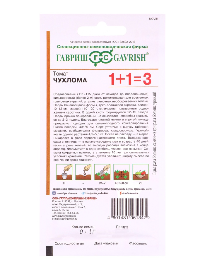 Семена Томат Чухлома сер. 1+1/0,1 г автор.