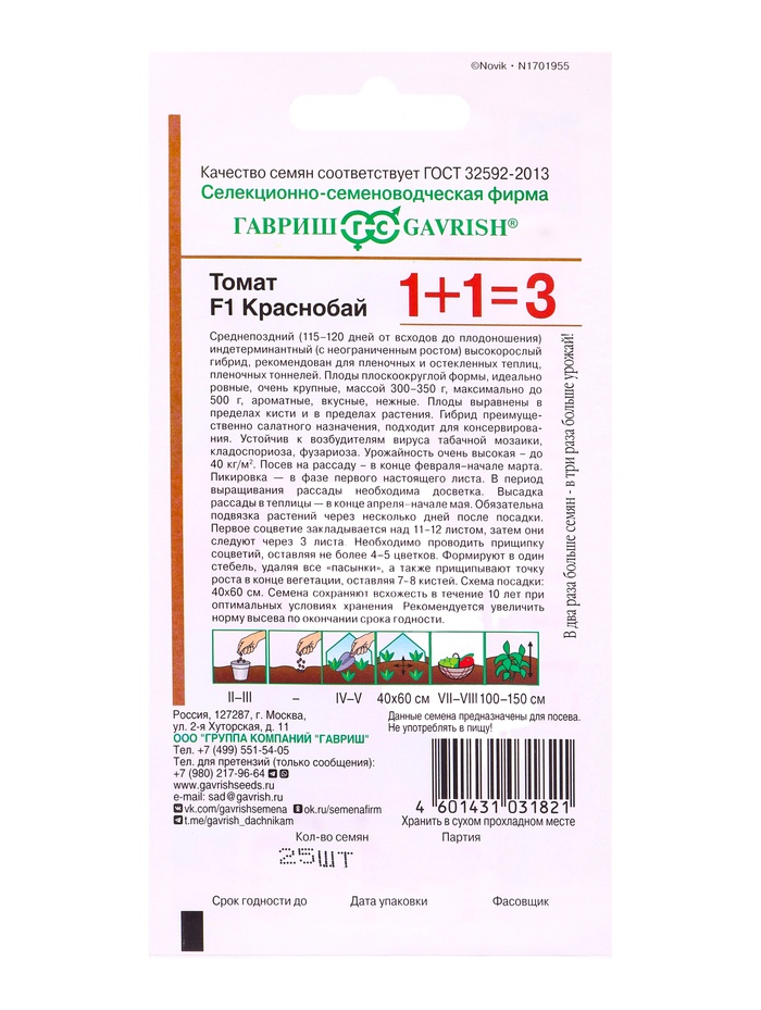 Семена Томат Краснобай F1 серия 1+1/25 шт. автор. DH