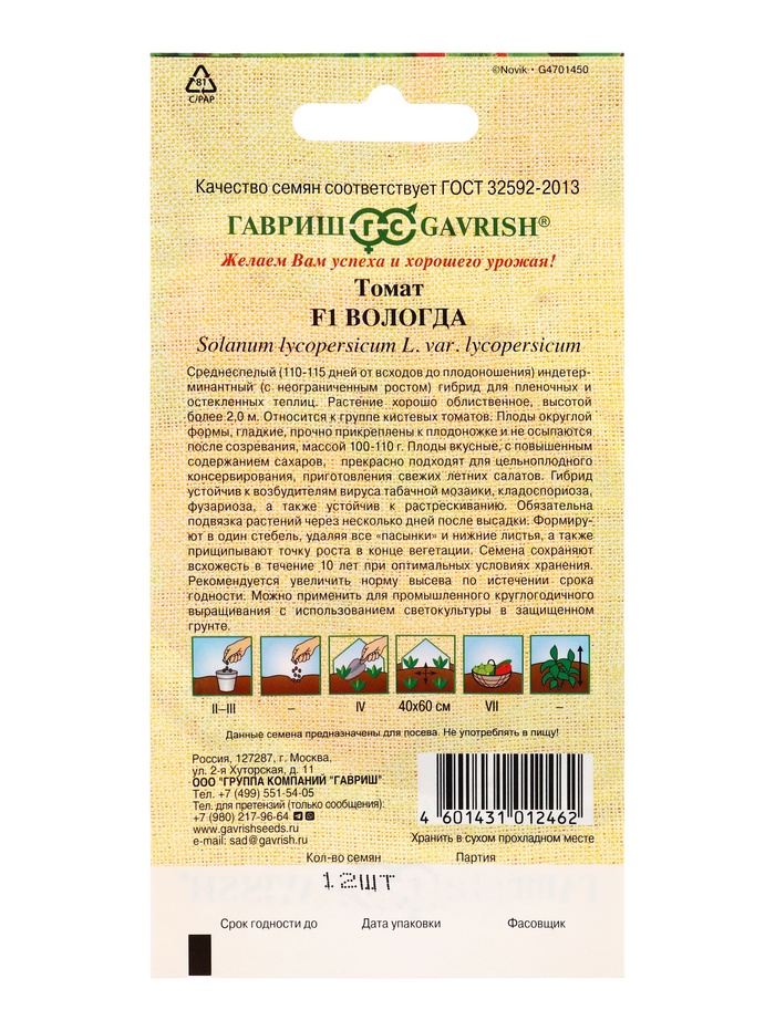 Семена Томат Вологда F1 12 шт. автор.