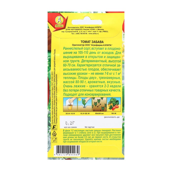 Посев: выращивают через рассаду с обязательной пикировкой в фазе 1-2x настоящих листьев. Рассаду высаживают в возрасте 60-65 дней, размещая на 1м2 3-4 шт. Растения подвязывают и формируют в 1-2 стебля. Обязательным является удаление боковых побегов (пасынков). Растениям необходимы регулярные поливы, прополки, рыхления и подкормки.