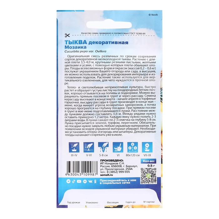 Семена Тыква "Мозаика", декоративная, Сем. Алт, ц/п, 0,5 г