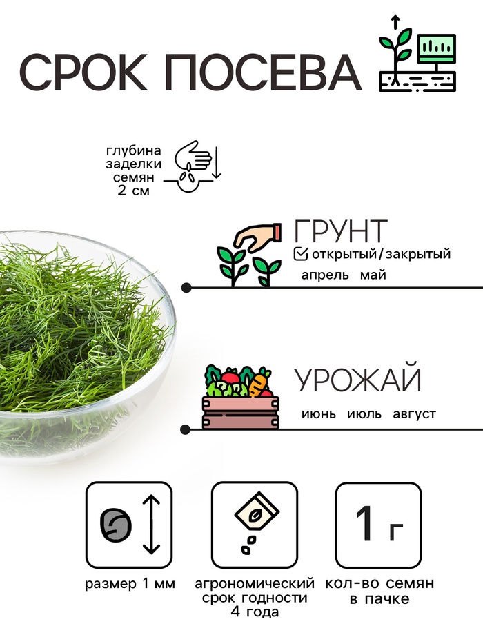 Представьте, как уже через месяц на вашем столе окажется свежая, ароматная зелень, выращенная своими руками. Укроп Кибрай — это надежное решение для тех, кто ценит качество, простоту и экономичность. Семена этого сорта станут вашим верным помощником в создании вкусных блюд и заготовок. Не упустите возможность вырастить свой собственный урожай зелени — ведь это просто, выгодно и приятно! Купите семена Укроп Кибрай прямо сейчас и сделайте шаг к здоровому питанию и уютной кухне. Комментарии к товару