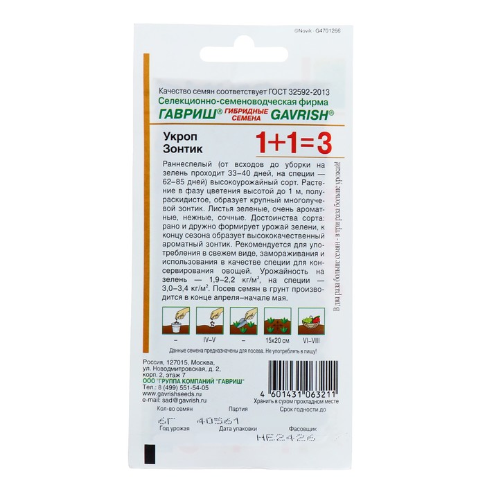 Среднеранний (от всходов до уборки на зелень проходит 33-40 дней, на специи-62-85 дней) высокоурожайный сорт. Растение в фазу цветения высотой до 1 м, полураскидистое, образует крупный многолучевой зонтик. Листья зеленые, очень ароматные, нежные, сочные. Достоинства сорта: рано и дружно формирует урожай зелени, к концу сезона образует высококачественный ароматный зонтик. Рекомендуется для употребления в свежем виде, замораживания и использования в качестве специи для консервирования овощей. Посев семян в грунт производится в конце апреля - начале мая. Урожайность на зелень-1,9-2,2 кг/м2, на специи — 3,0-3,4 кг/м2.