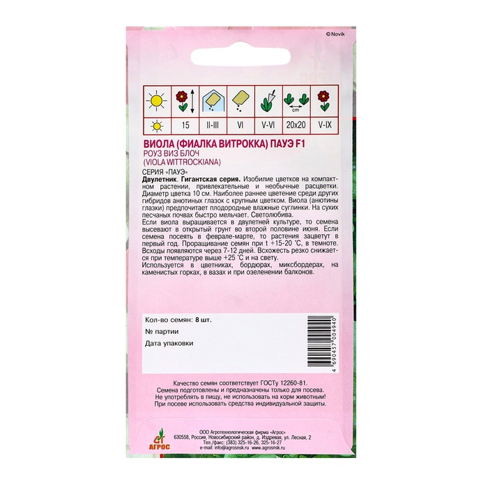 Как вырастить виолу «Роза с Блоком» Высейте семена в открытый грунт на хорошо освещенном участке. Учитывайте светолюбивость растения, разместив их в месте с достаточным солнечным светом. Вам обеспечен красивый цветник, который будет привлекать внимание и восхищать красотой. Выберите семена виолы «Роза с Блоком» для создания незабываемой цветочной композиции, которая станет гордостью вашего сада и любимым местом отдыха. Комментарии к товару
