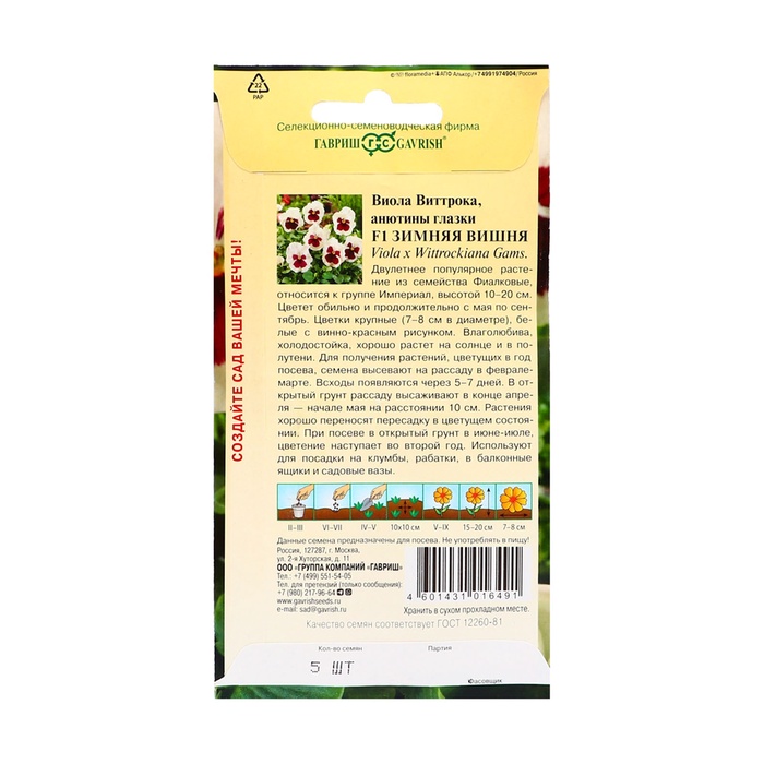 Семена Виола «Зимняя вишня», F1, 5 шт., «Гавриш»