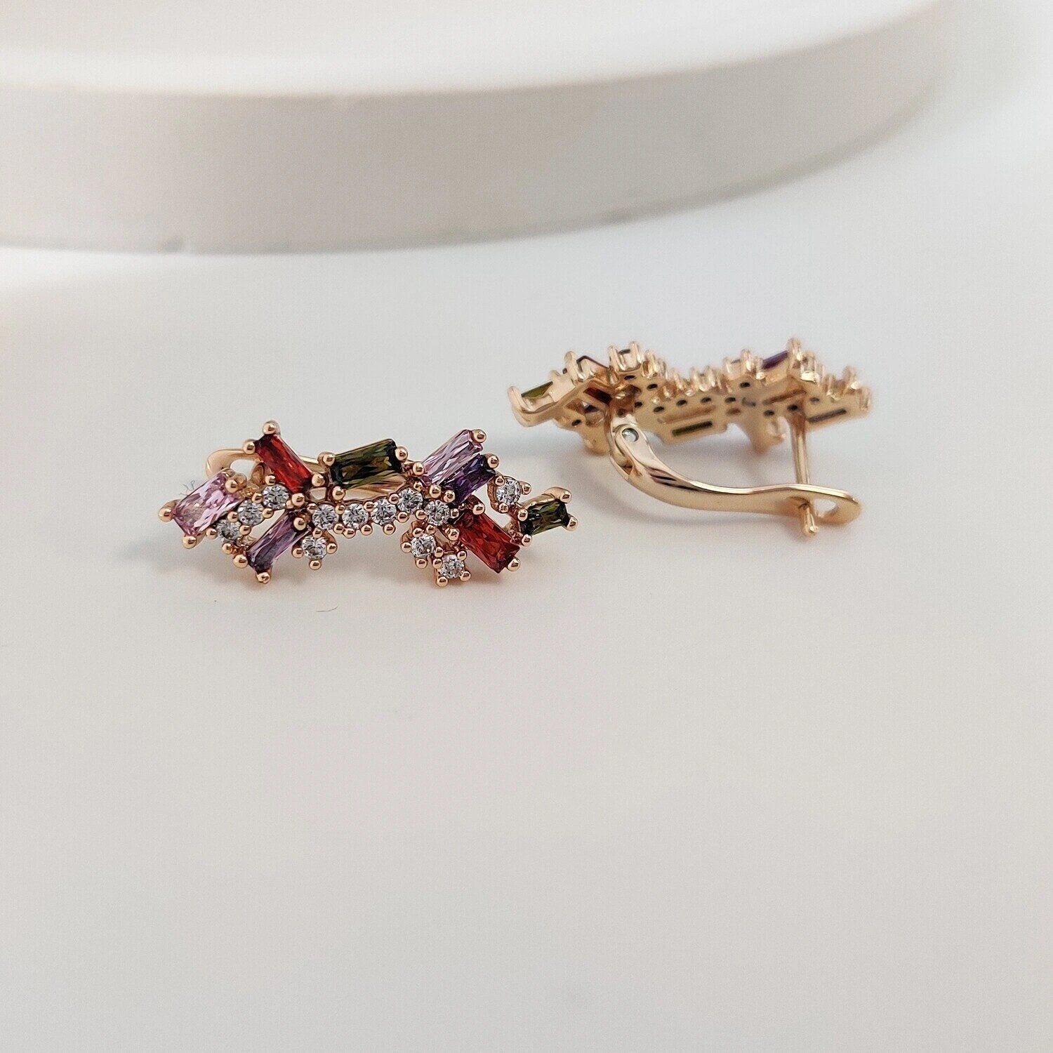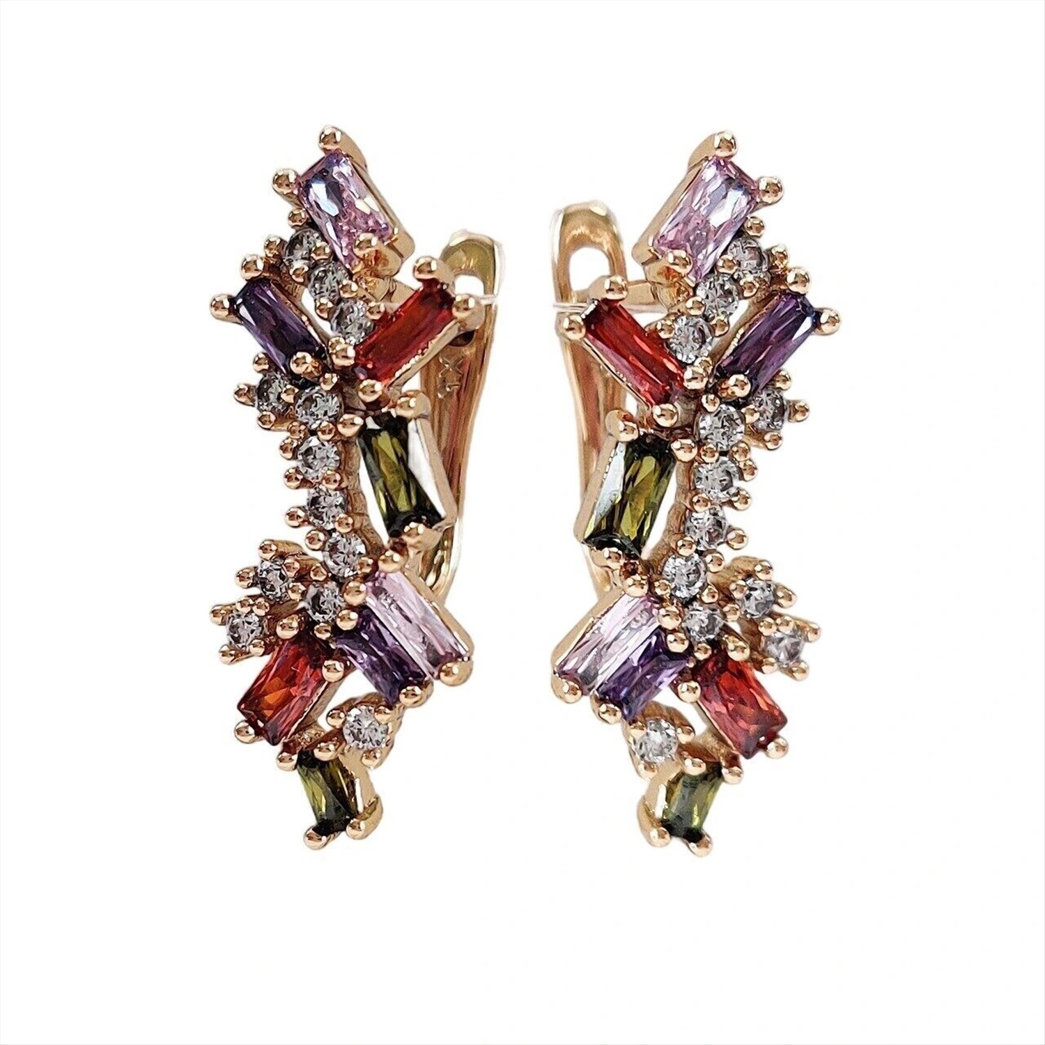 Вставка: Цирконы Материал изделия: ювелирный сплав Размер: - 2.5 см Вид(модель) сережек: Английский замочек Красивые серьги  с благородными цирконами изготовлены из специального гипоаллергенного ювелирного сплава