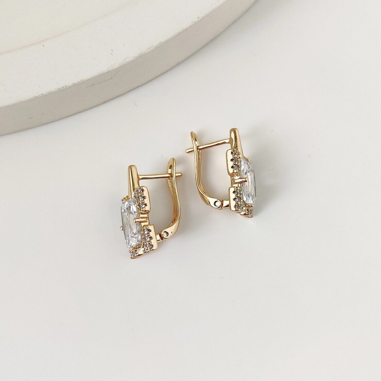 Красивые серьги с благородными цирконами изготовлены из специального гипоаллергенного ювелирного сплава
