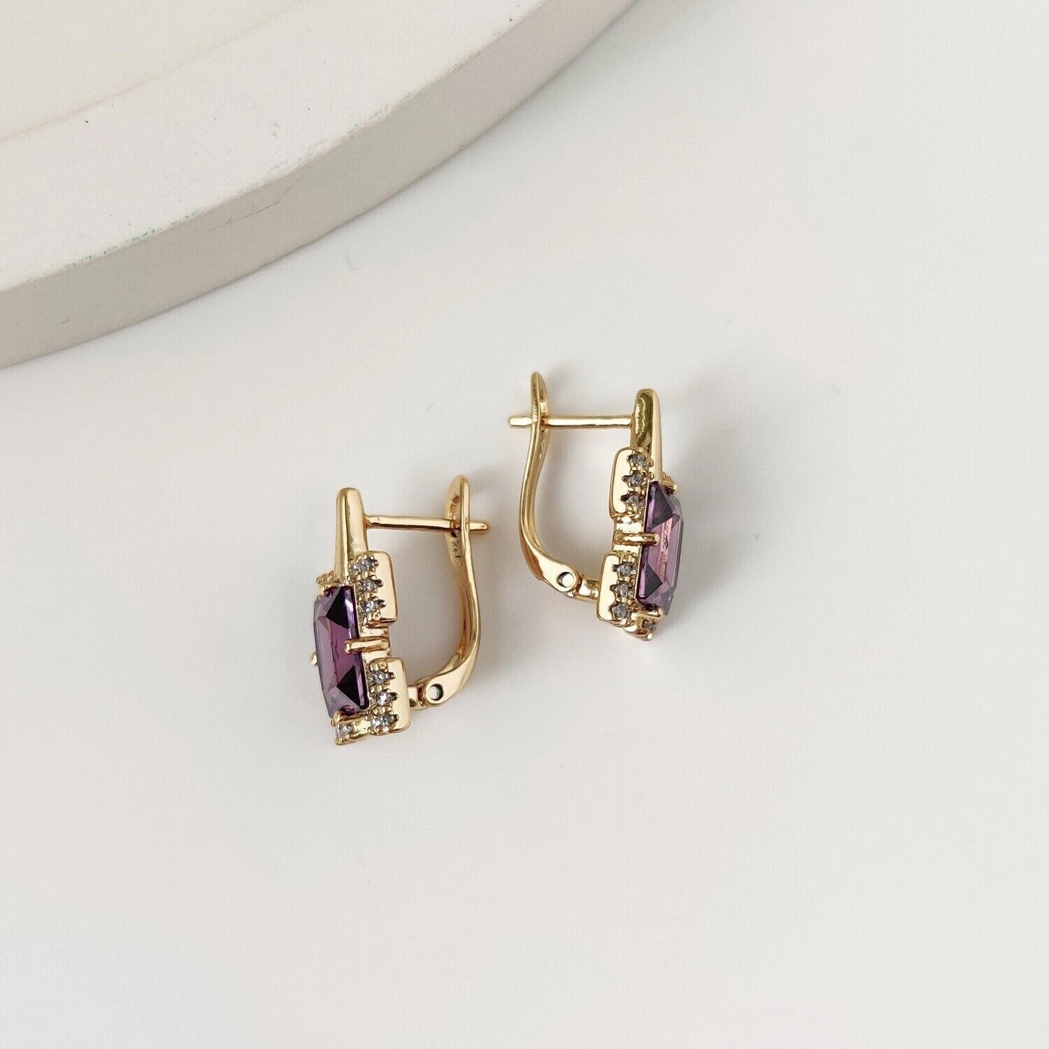 Вставка: Цирконы Материал изделия: ювелирный сплав Размер: - 1.5 см Вид(модель) сережек: Английский замочек Красивые серьги с благородными цирконами изготовлены из специального гипоаллергенного ювелирного сплава