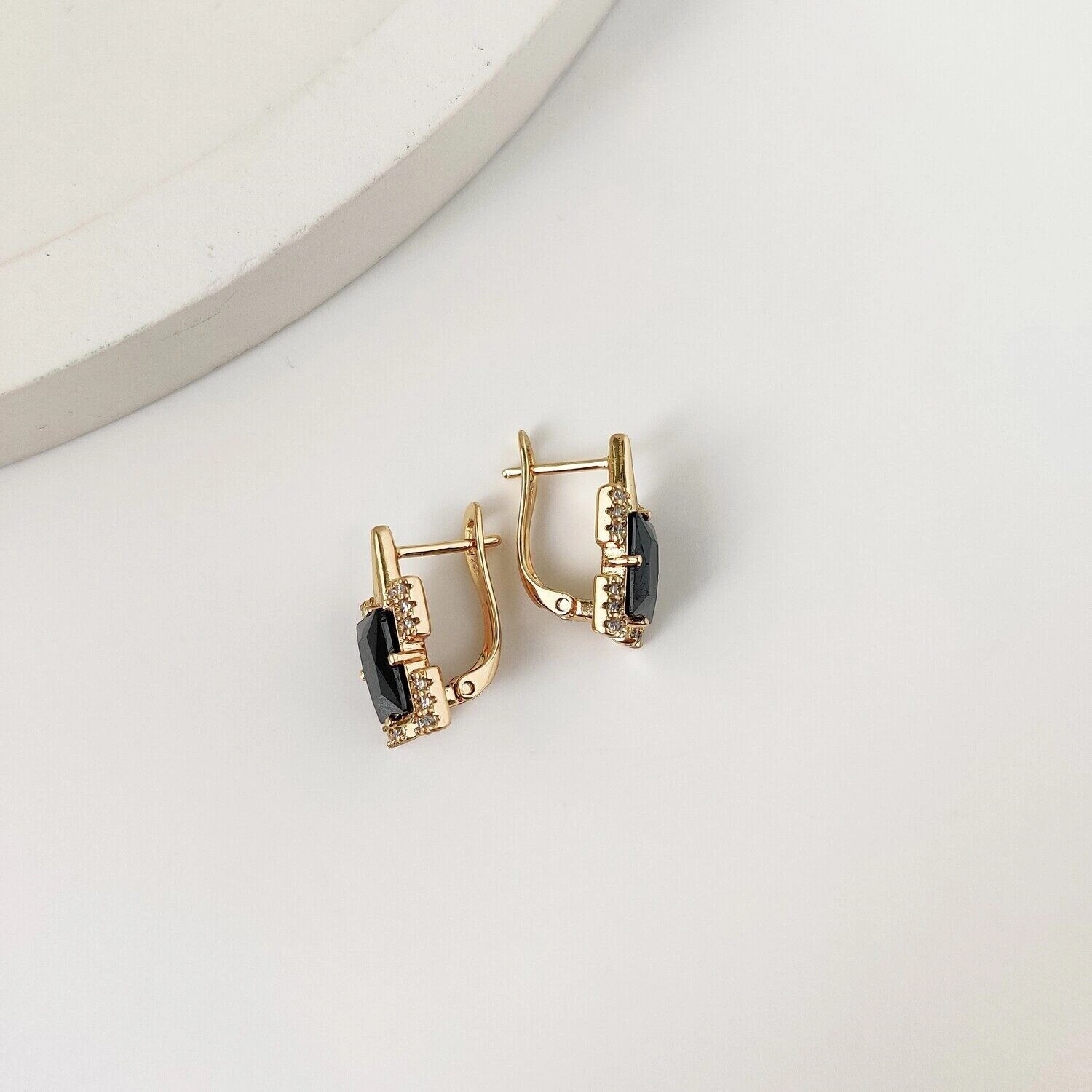 Вставка: Цирконы Материал изделия: ювелирный сплав Размер: - 1.5 см Вид(модель) сережек: Английский замочек Красивые серьги  с благородными цирконами изготовлены из специального гипоаллергенного ювелирного сплава
