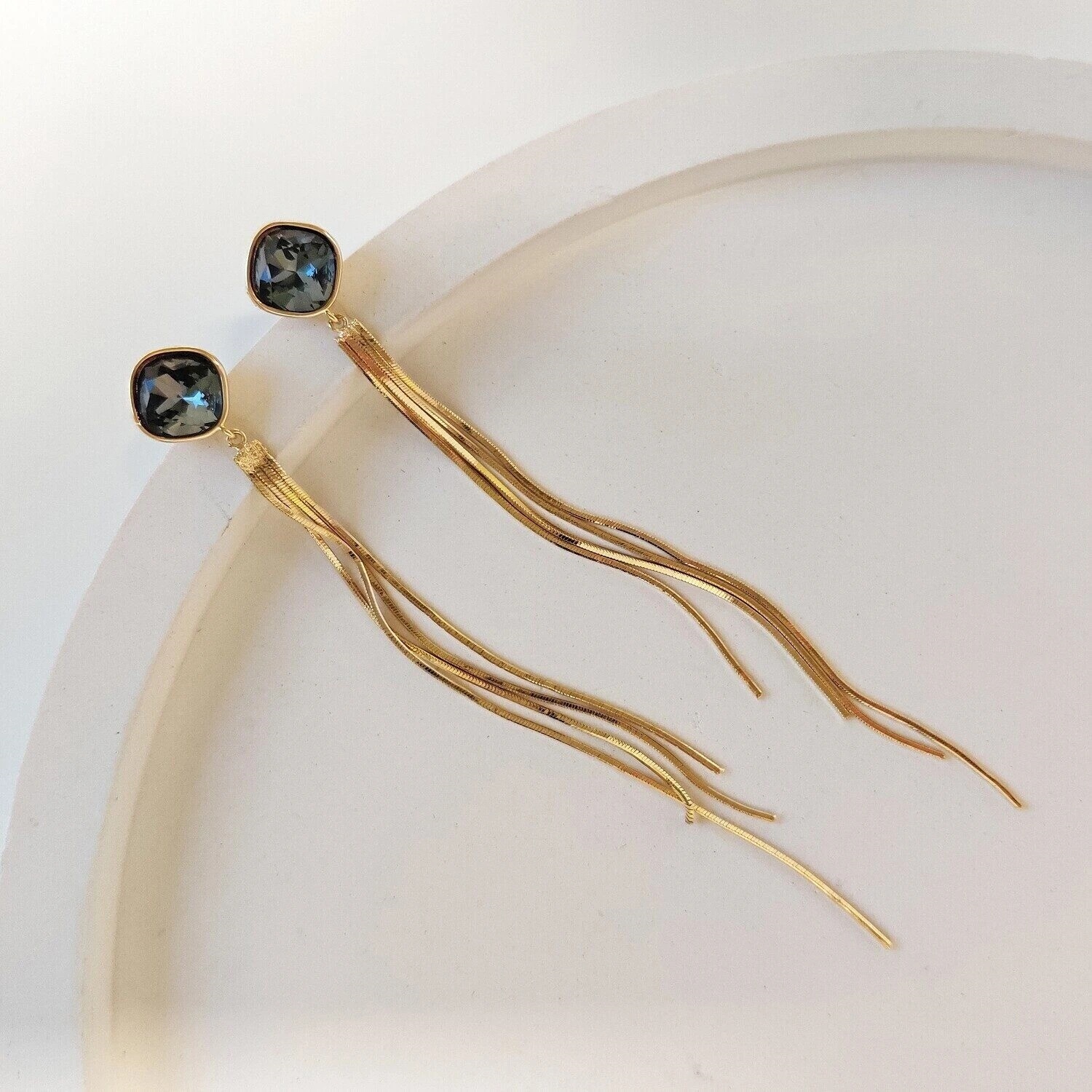 Вставка: Кристалл Материал изделия: ювелирный сплав Размер: 10 см Красивые серьги из специального гипоаллергенного ювелирного сплава, который покрыт золотом или устойчивым родиевым покрытием, предотвращающим раздражение кожных покровов.