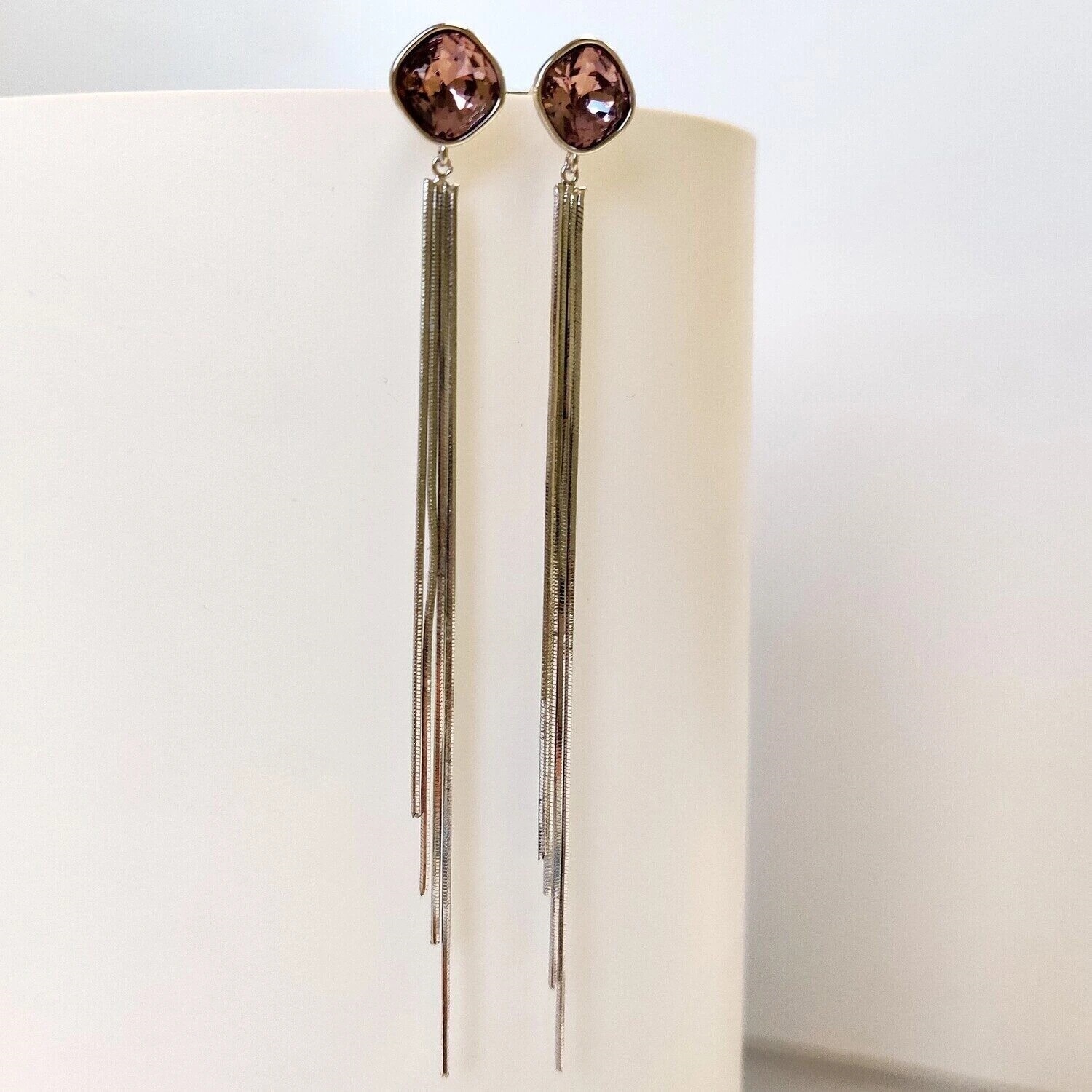 Вставка: Кристалл Материал изделия: ювелирный сплав Размер: 10 см Красивые серьги из специального гипоаллергенного ювелирного сплава, который покрыт золотом или устойчивым родиевым покрытием, предотвращающим раздражение кожных покровов.
