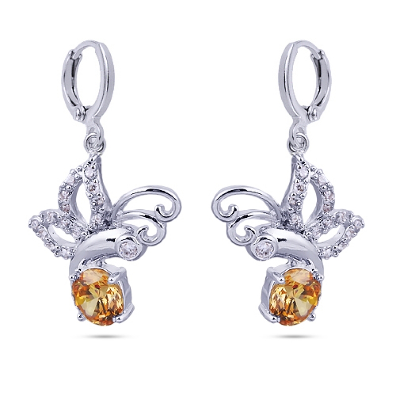 Размер: серьги 2*1.5см серьги(вставки-цирконы шампань,покрытие-родирование), размер серьги-3х1.5см
