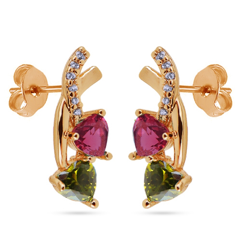 Размер: серьги 1.5*1см серьги(вставки-цирконы,микс,покрытие-золото)