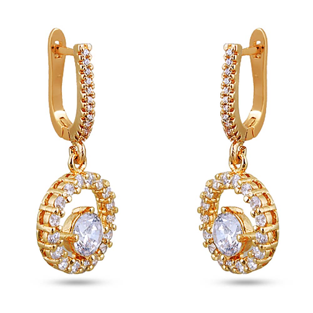 Размер: серьги 3*1.5см серьги(вставки-цирконы белые,покрытие-золото), диаметр 1.7см