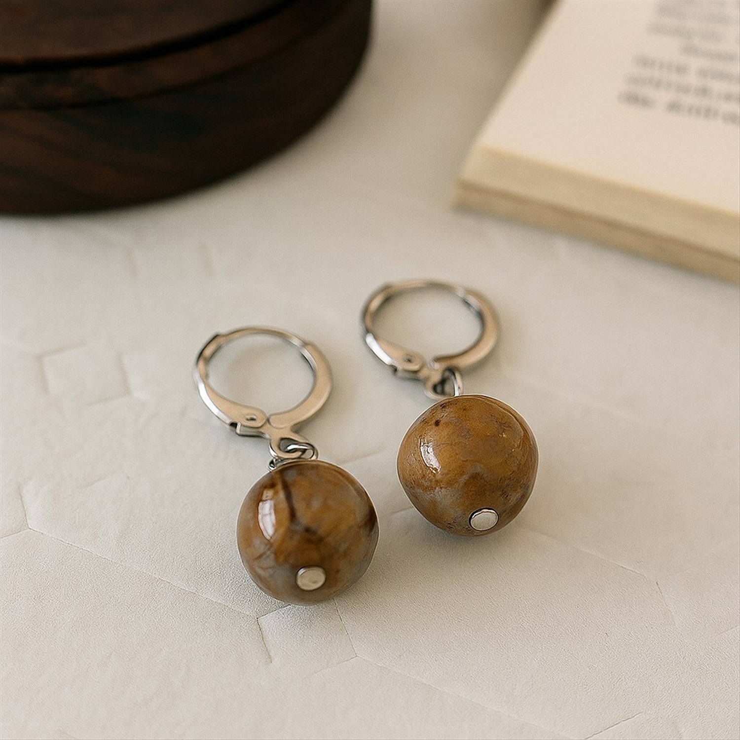 Серьги бижутерия длинные с натуральным камнем яшма, арт.007.129
