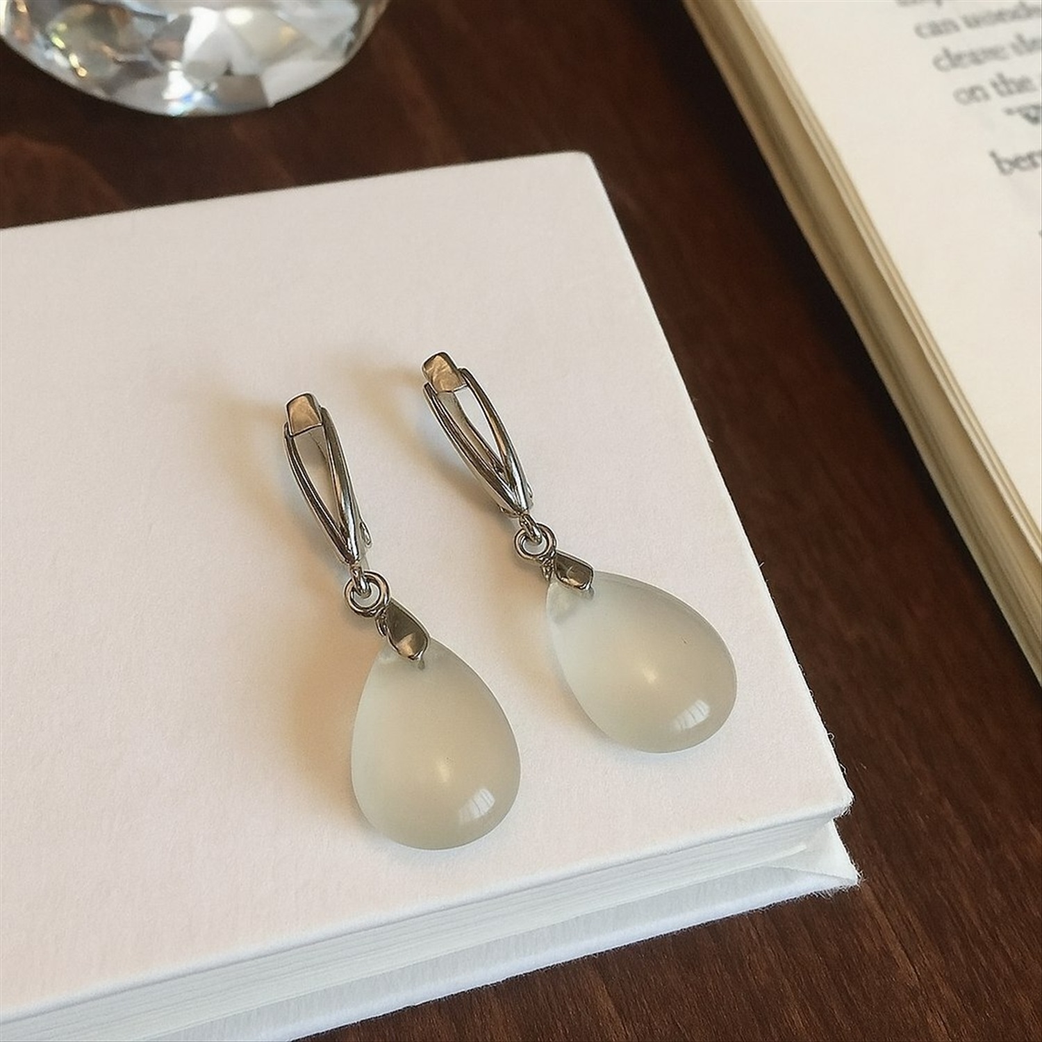 Серьги бижутерия длинные с натуральным лунным камнем, арт.007.132